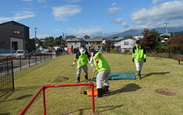 また、4月には北側緑地公園遊歩道を近隣住民に一時開放し咲き誇る様々な花木を楽しんで頂き、6月の環境月間に合せたボランティア活動として会社周辺道路清掃「クリーンアップ作戦」、9月の霞ヶ城遊歩道内成田園地草刈奉仕作業、10月の提灯祭りへの模擬店出店、菊人形会場への場面協賛も実施しています。